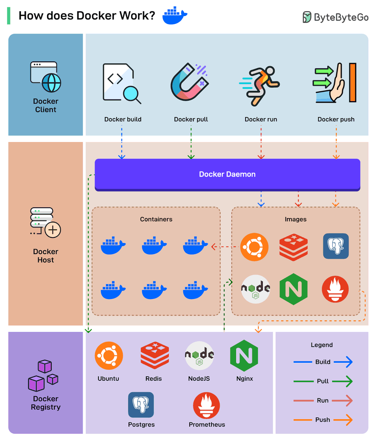 Fonte: ByteByteGoOs três elementos básicos do Docker
