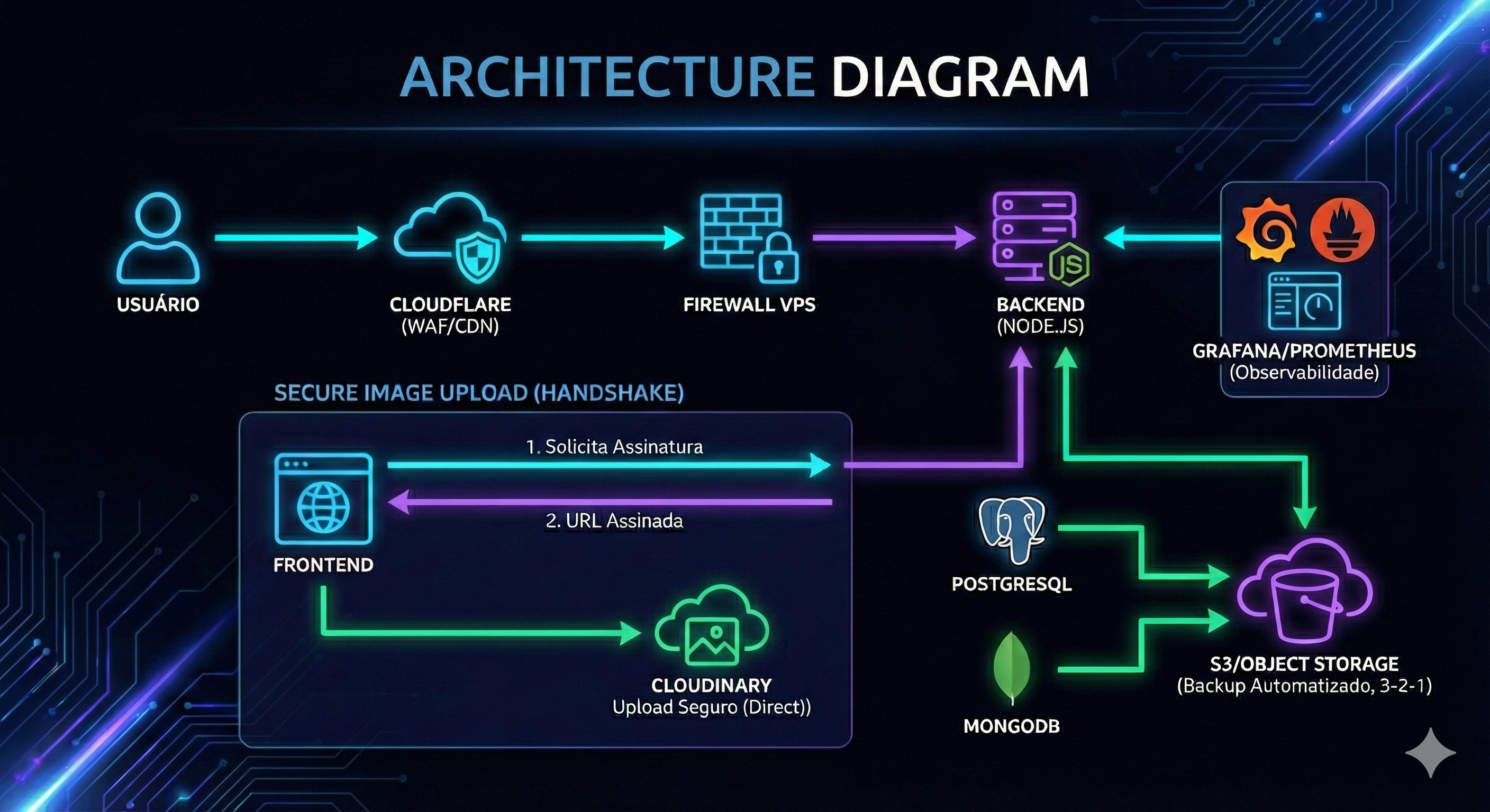 - CDN & Caching: Recursos estáticos são cacheados na borda, reduzindo drasticamente a carga no servidor e melhorando a latência para usuários em diferentes regiões.