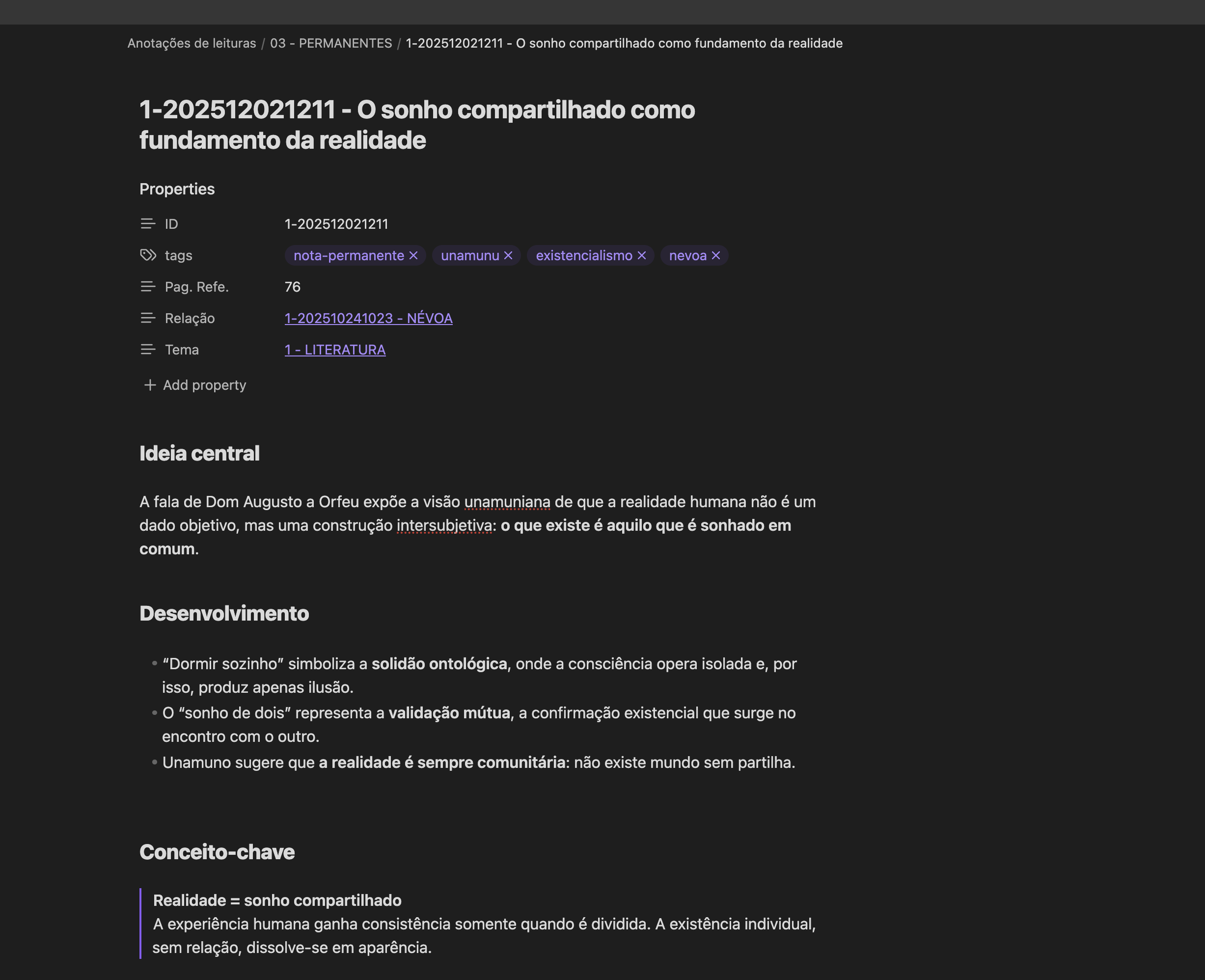 - Notas Relacionadas: Um espaço onde você listará os links para as Notas Permanentes (ideias e conceitos) que surgiram dentro deste tema